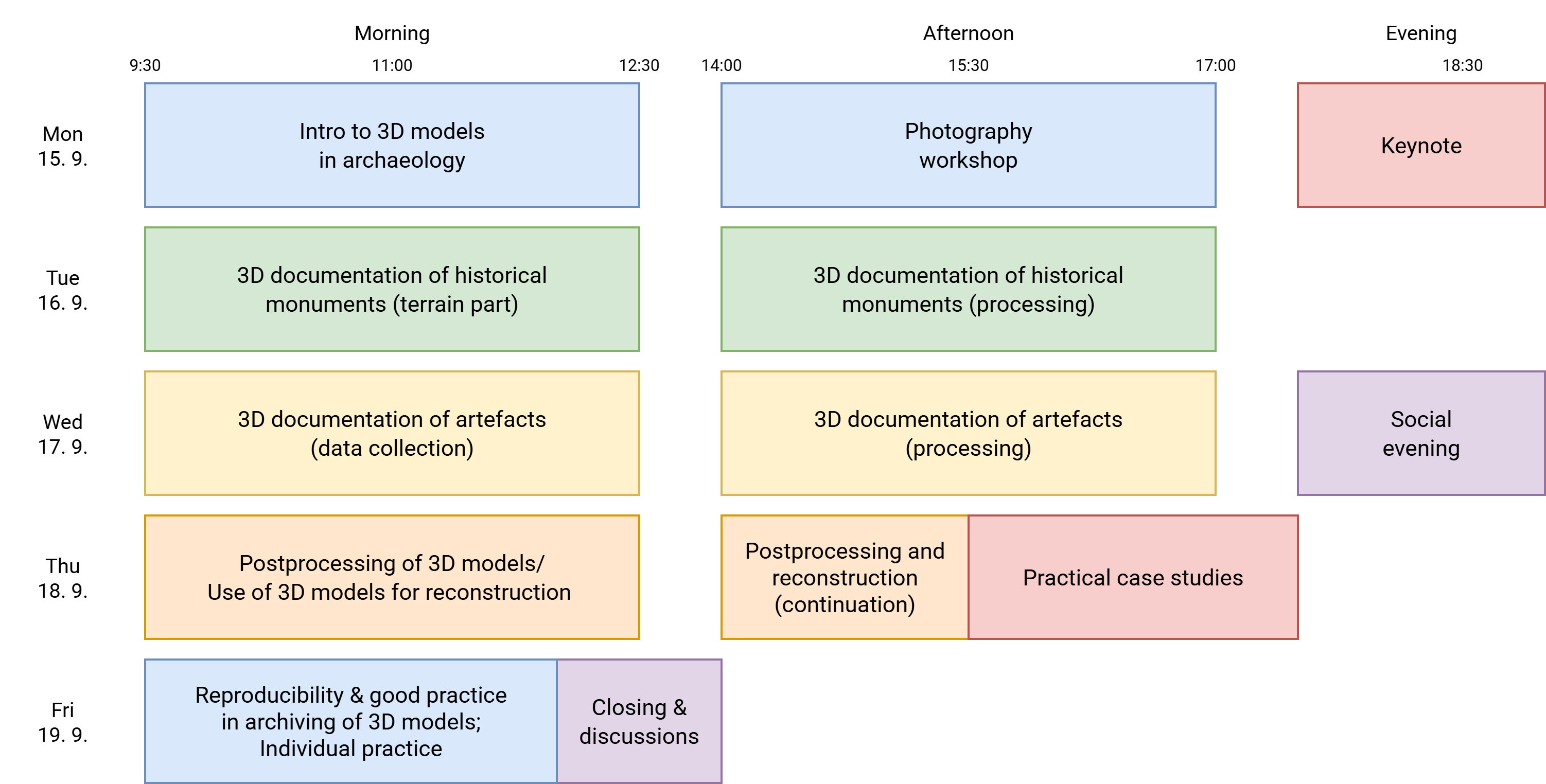 The final day of the summer school will be crucial for ensuring sustainability and scientific integrity. The morning session will cover reproducibility and good practice in the archiving of 3D models, which is essential for future data utilization and research transparency. The day will also include dedicated time for individual practice, allowing participants to reinforce their newly acquired skills on personal projects or focus on areas of particular interest.